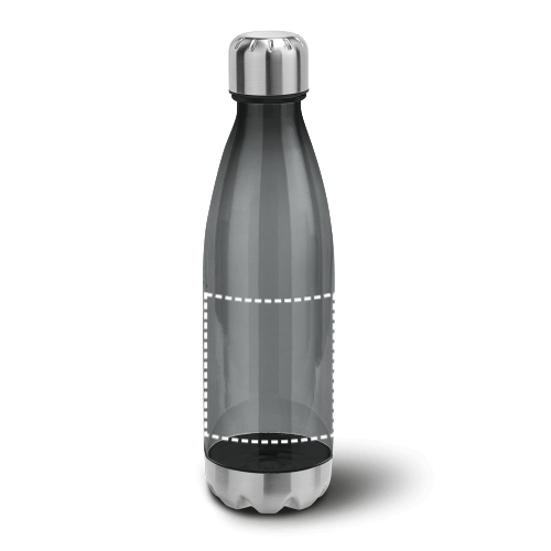 Offriamo anche un'opzione di stampa digitale a 360 su articoli cilindrici, come le nostre bottiglie di vetro, plastica o metallo. Questa tecnica è possibile solo su articoli senza manici.