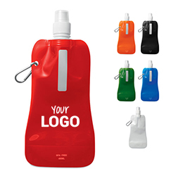 Bottiglia pieghevole in PE con beccuccio push-pull. Coperchio trasparente e moschettone. Capacità fino a 460 mL