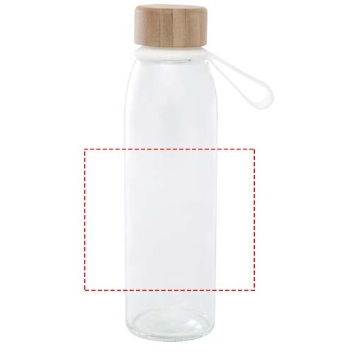Borraccia in vetro a parete singola con coperchio a vite in bambù proveniente da fonti più sostenibili, responsabili dal punto di vista sociale. È dotata di un comodo cinturino in silicone per un facile trasporto. Fornita in confezione regalo in cartone riciclato. Capacità: 500 ml.