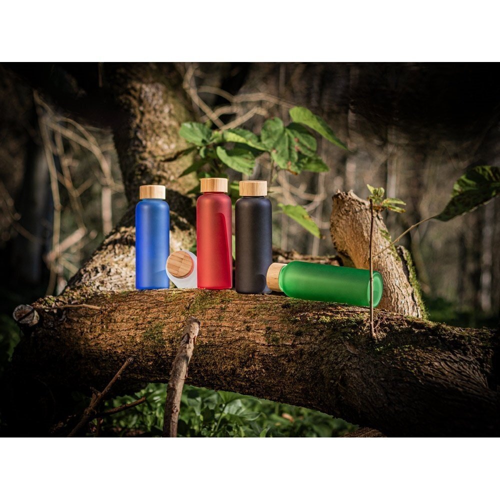 Borraccia in vetro borosilicato opaco con tappo in bambù e capacità fino a 500 mL. Fornita in confezione regalo di carta kraft. Poiché il prodotto è realizzato con materiali naturali, il colore del prodotto e il risultato della stampa possono variare da un prodotto all'altro