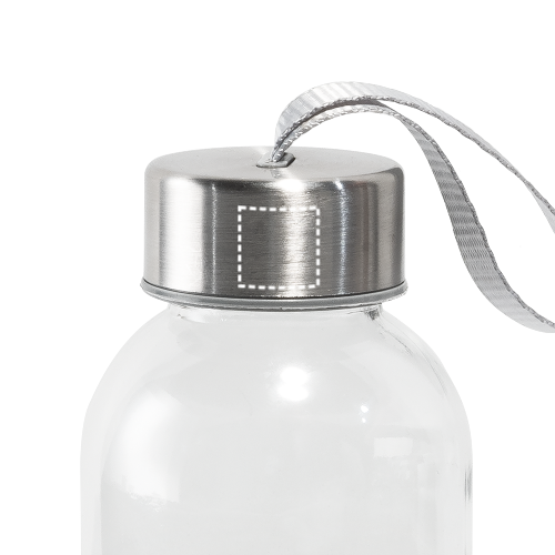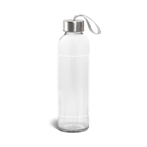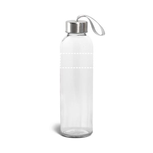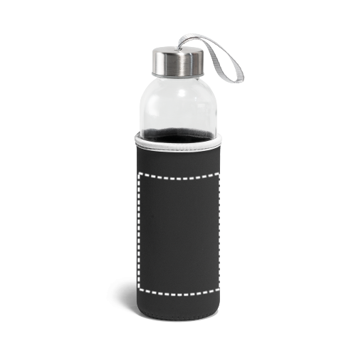 Borraccia sportiva in vetro e acciaio inossidabile con laccetto sul tappo per un facile trasporto. Capacità fino a 520 mL. Fornita in custodia morbida
