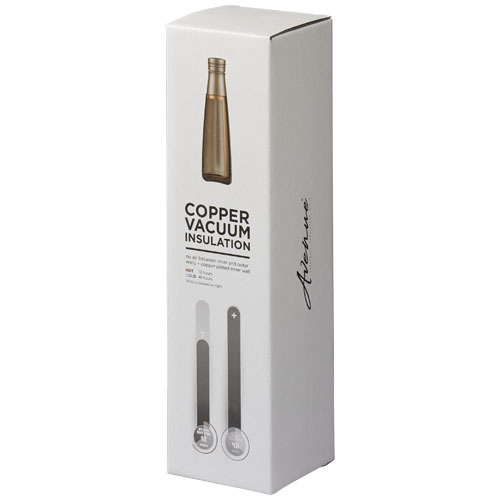 Bottiglia Duke, parete doppio strato 18/8 gradi in acciaio inox con isolamento sottovuoto. L'interno della parete è placata in rame che permette di mantenere fredde le bevande per 12 ore, quelle calde per 48 ore. Capacità 500ml. Confezione regalo Avenue.