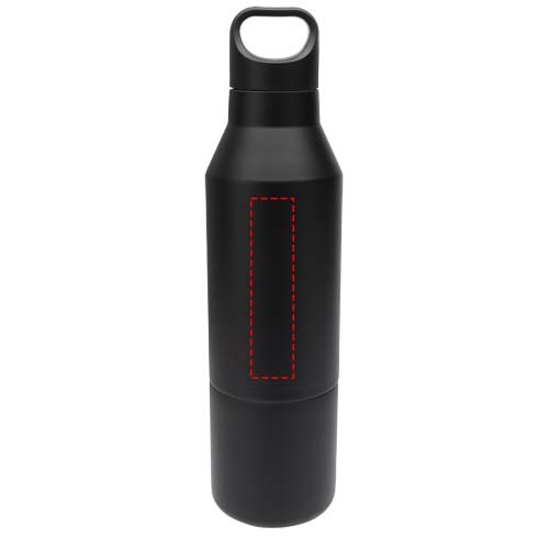 Borraccia termica in rame a doppia parete in acciaio inossidabile con certificazione RCS dotata di tazza rimovibile, anc'essa con isolamento a doppia parete. Questa borraccia multiuso è progettata per essere inserita nella tasca laterale di uno zaino ed è dotata di un comodo manico per il trasporto integrato nel tappo. Verniciatura a polvere esterna resistente. Mantiene le bevande calde per 12 ore o fredde per 24 ore. Fornita in una confezione regalo in cartone riciclato. Capacità della borraccia: 600 ml. Capacità della tazza: 300 ml.