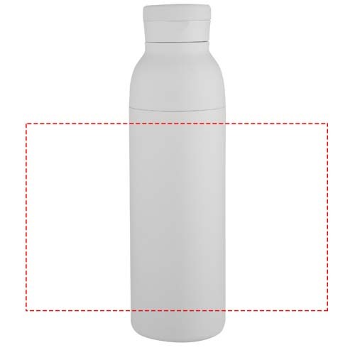 Borraccia termica a doppia parete con isolamento sottovuoto in acciaio inossidabile certificato RCS, dotata di un manico in silicone incorporato nel coperchio. Mantiene le bevande fredde per 48 ore o calde per 12. La struttura composta da due elementi facilita la pulizia, mentre la finitura verniciata a polvere e la placcatura in rame resisenti garantiscono una lunga durata. Fornita in una confezione regalo in cartone riciclato. Capacità: 650 ml.