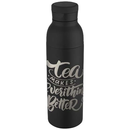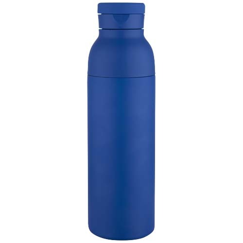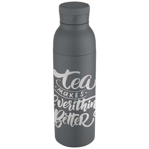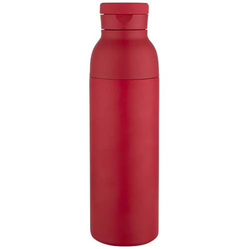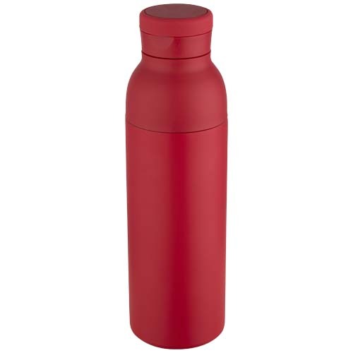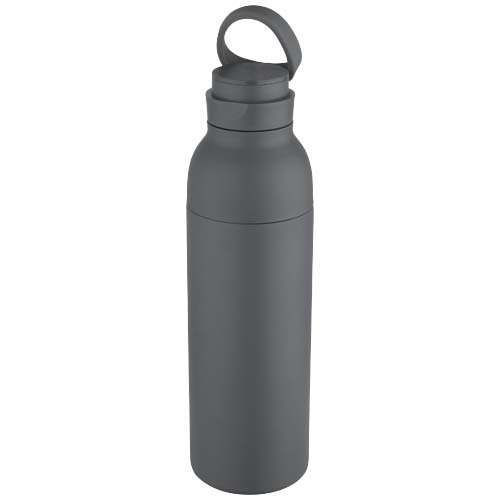 Borraccia termica a doppia parete con isolamento sottovuoto in acciaio inossidabile certificato RCS, dotata di un manico in silicone incorporato nel coperchio. La struttura composta da due elementi facilita la pulizia, mentre la finitura verniciata a polvere e la placcatura in rame resisenti garantiscono una lunga durata. Fornita in una confezione regalo in cartone riciclato. Capacità: 650 ml.