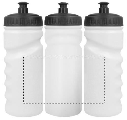 Borraccia da sport con comoda impugnatura. In PE. Capacità: 500 ml. BPA 500ml.Antigoccia.