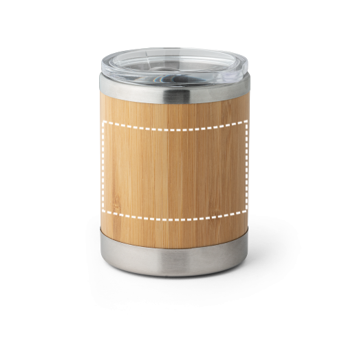 Bicchiere da 350 mL con doppio corpo con isolamento ad aria in acciaio inossidabile e bambù e tappo in AS con chiusura a scorrimento. Fornito in confezione regalo di carta kraft. Poiché il prodotto è realizzato con materiali naturali, il colore del prodotto e il risultato della stampa possono variare da un prodotto all'altro. ø80 x 108 mm