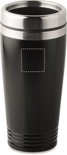 Bicchiere doppio strato in acciaio inossidabile con coperchio in PP nero. Capacità: 400 ml.Antigoccia.