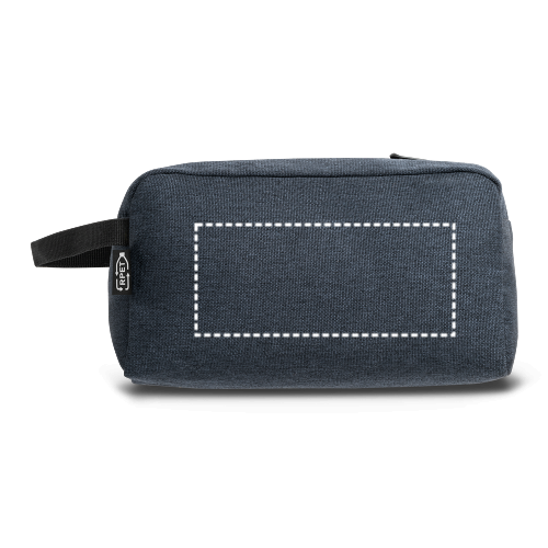 Beauty case in poliestere riciclato 600D con interni foderati. Tasca frontale con chiusura e manico in webbing. 220 x 120 x 110 mm