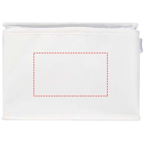 Realizzata in tessuto non tessuto PET riciclato, durevole e resistente agli strappi, la borsa termica Spectrum può contenere fino a 6 lattine ed è dotata di un manico in tessuto facile da trasportare. Capacità: 4 litri.