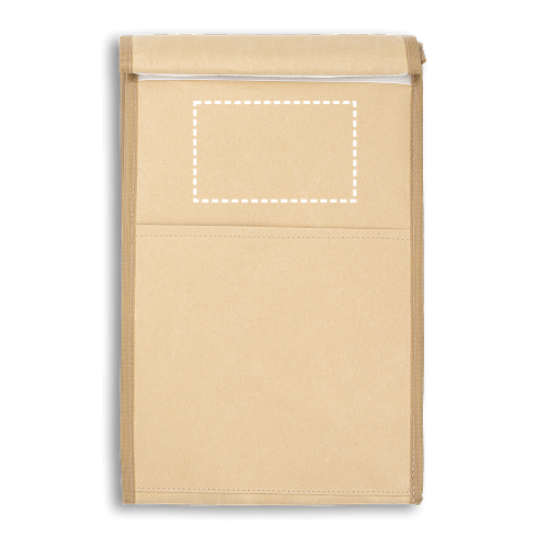 Borsa termica in carta con capacità fino a 4L. Foderata in non-woven e con isolamento termico in alluminio. Chiusura a strappo e tasca frontale