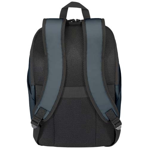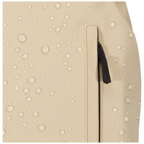 Realizzato in pregiata pelle PU riciclata certificata GRS con fodera in RPET in colore abbinato, questo zaino antifurto da 15" mantiene gli effetti personali protetti e asciutti durante gli spostamenti. Dispone di uno scomparto per computer portatile con accesso posteriore, di due tasche laterali e di una tasca frontale con cerniera impermeabile. Il pannello posteriore traspirante assicura comfort per tutto il giorno, rendendolo ideale per gli spostamenti, i viaggi e le avventure in città. Capacità: 18 litri.