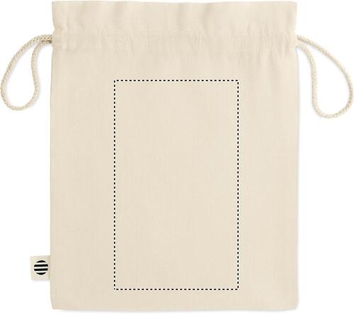 Sacca media regalo con cordoncino in cotone biologico. Dimensioni ca. 25 x 32 cm. 105 gr/m².