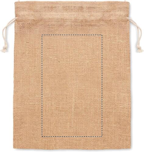Sacca media in juta con cordino. Misura circa 25x32cm. Questo prodotto è certificato OEKO-TEX® STANDARD 100.