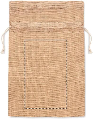 Piccola sacca in juta con cordino. Misura circa 14x22cm Questo prodotto è certificato OEKO-TEX® STANDARD 100.