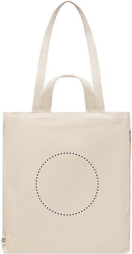 Shopper o borsa mare in policotone riciclato (70% cotone riciclato, 30% poliestere riciclato) con manici corti e lunghi. Tasca laterale con cerniera. 380 gr/m².