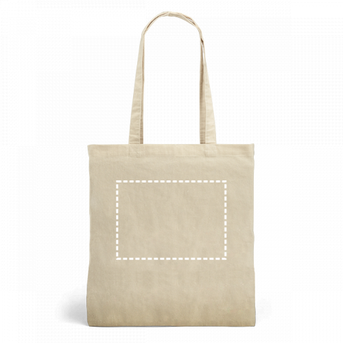 Borsa in cotone 100% (160 g/m²) con dettaglio in imitazione iuta e manici da 65 cm. 375 x 415 mm