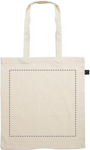 Shopper in cotone equo e solidale con manici lunghi. 140 gr/m². Questo prodotto è certificato OEKO-TEX® STANDARD 100.