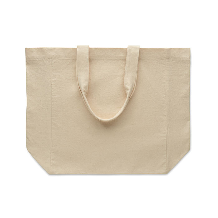 Shopper in cotone con manici corti e soffietto. 220 gr/m².