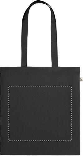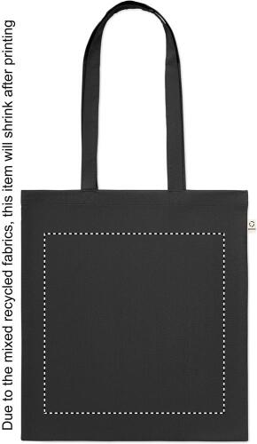 Shopper in cotone riciclato post-consumo (70% cotone riciclato e 30% RPET) con manici lunghi. 140 gr/m². Questo articolo può restringersi dopo la stampa.