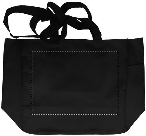 Shopper in poliestere 600D con tasca laterale e tasca interna con chiusura a zip. Manici lunghi e corti.
