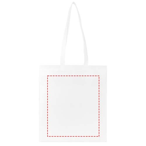 Realizzata in PET riciclato e certificato GRS, durevole e resistente agli strappi, la tote bag EcoSeal è priva di cuciture e presenta una termosaldatura ad ultrasuoni e manici sagomati. La borsa è dotata di manici con una lunghezza di 30 cm, è perfetta per conservare gli oggetti essenziali quotidiani ed è adatta per le fiere o per gli omaggi promozionali. Resistenza fino a 5 kg di peso. Capacità: 6 litri.