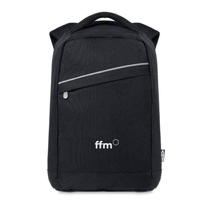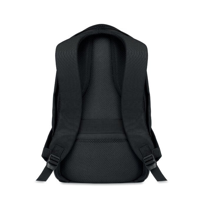Zaino in RPET 600D con tracolla imbottita e ampio scomparto interno imbottito adatto per un laptop da 13 pollici. Scomparto principale con cerniera sul retro per una maggiore sicurezza.