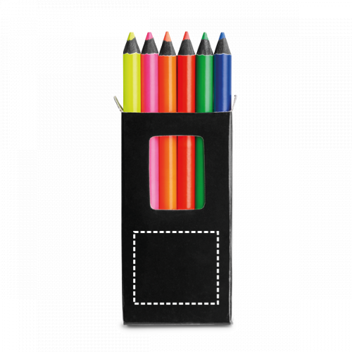Scatola con 6 matite fluorescenti in legno per colorare. 90 x 10 x 48 mm