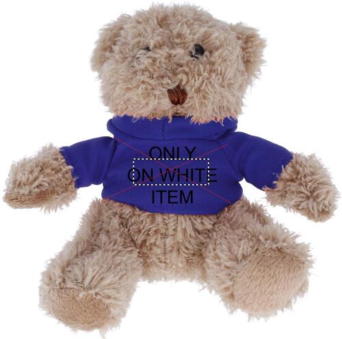 Peluche 'orsacchiotto' con T-shirt con cappuccio. Stampa in sublimazione disponibile sono sull’articolo di colore bianco.