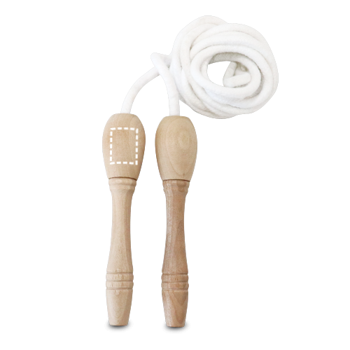 Corda per saltare con manici in legno, ideale per giocare all'aperto. Poiché il prodotto è realizzato con materiali naturali, il colore del prodotto e il risultato della stampa possono variare da un prodotto all'altro