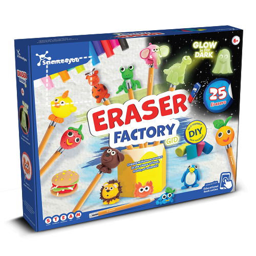 Fabbrica di gomme, il giocattolo perfetto per i bambini curiosi di sapere: come fa una gomma a cancellare ciò che scrive una matita?Questo kit permette di creare gomme che si illuminano al buio, con forme uniche e personalizzate. Età consigliata:+ 6 anni