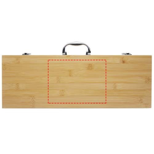 Set da barbecue in bambù composto da 3 pezzi: spatola (42 x 9,5 cm), pinza (46 x 2,2 cm) e forchettone (43 x 3,2 cm). Il set viene consegnato in una confezione regalo in bambù (51,5 x 18,2 x 7,2 cm). I manici e la confezione regalo sono realizzati in bambù ottenuto e prodotto in base a standard ecosostenibili.