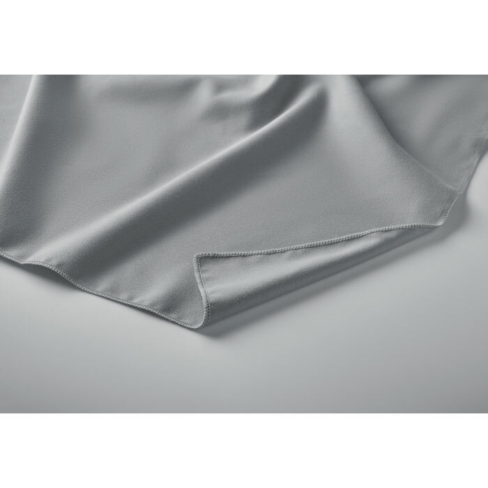 Asciugamano in microfibra in 90% poliestere e 10% poliammide con manico elastico. Leggero e ad asciugatura rapida.