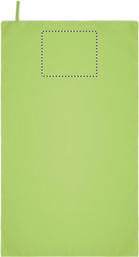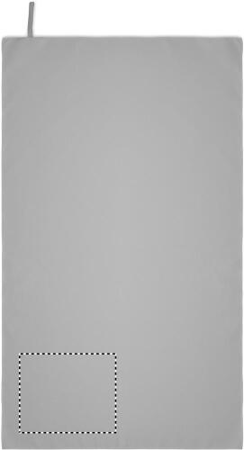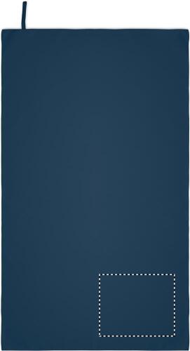 Asciugamano in microfibra realizzato al 90% in poliestere e al 10% in poliammide con anello elastico per appenderlo. Leggero e ad asciugatura rapida.