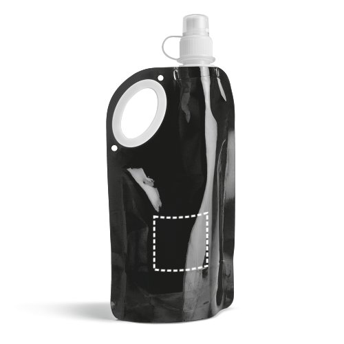 Borraccia pieghevole con tre strati in PET, PA e PE con una capacità fino a 750 mL. La borraccia ha un coperchio in PP. 158 x 286 x 75 mm