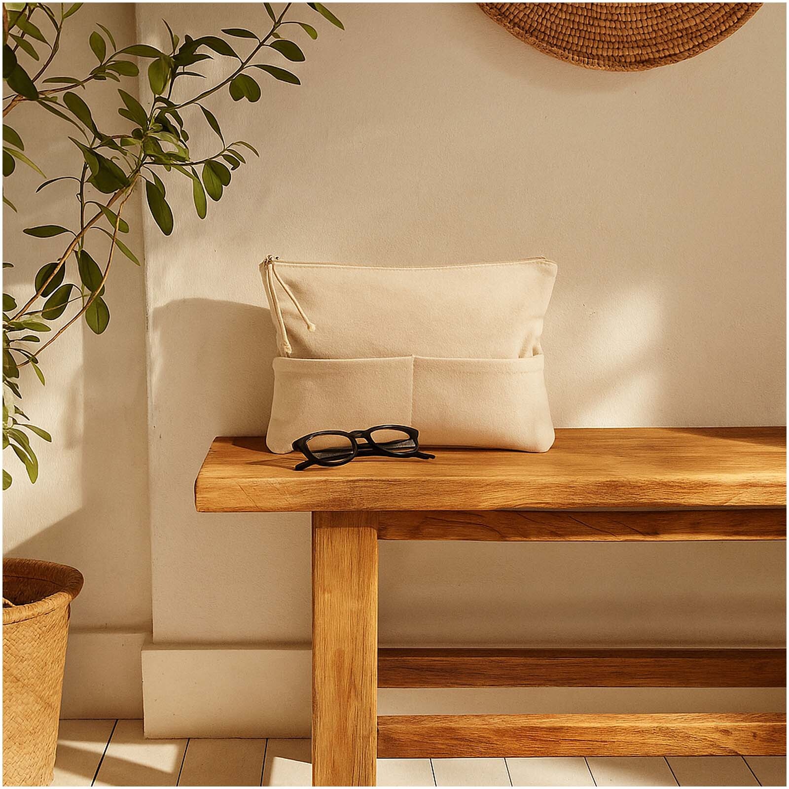 L'astuccio Zipzip è un modo elegante per tenere in ordine gli oggetti essenziali di tutti i giorni. Una chiusura sicura con zip protegge gli effetti personali, mentre le due piccole tasche anteriori (14 x 10,5 cm) consentono un rapido accesso agl oggetti di uso frequente. Realizzato al 100% in cotone organico (420 g/m²), unisce resistenza e una scelta più sostenibile. Grazie alle dimensioni di 28 x 20 cm, è ideale per riporre gli articoli di cancelleria, i cosmetici o tutto il necessario.