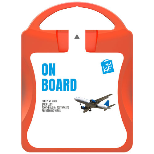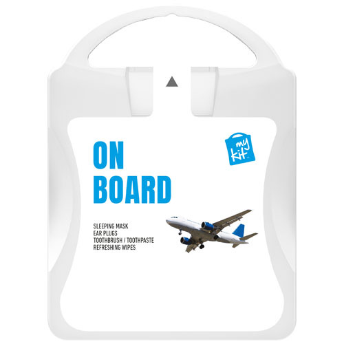 Il kit ideale per ogni viaggio. Con questo kit potrete rilassarvi e rinfrescarvi prima dell'arrivo a destinazione. Contenuto: 1 mascherina per gli occhi, 2 tappi per orecchie, 2 salviettine rinfrescanti. Tutti i prodotti contenuti nei MyKit rispettano le norme Europee vigenti. I prezzi includono stampa all-over fronte e retro.