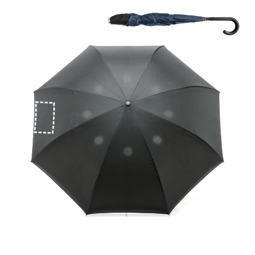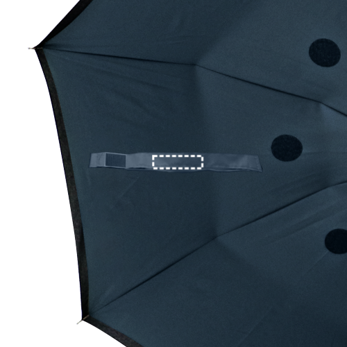 Ombrello reversibile a doppio strato in Pongee 190T con impugnatura in metallo, stecche in fibra di vetro, apertura manuale e chiusura automatica. Struttura brevettata. ø1050 x 790 mm