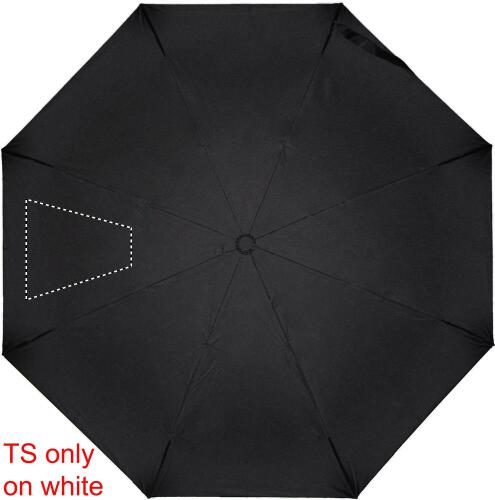 Ombrello deluxe automatico da 21'' in 190T. Struttura in acciaio placcata zinco. Nervature nere con due sezione in fibra di vetro e punte in metallo cromato. Manico nero con doming. 3 sezioni di chiusura. In sacchetto abbinato. Chiusura automatica.