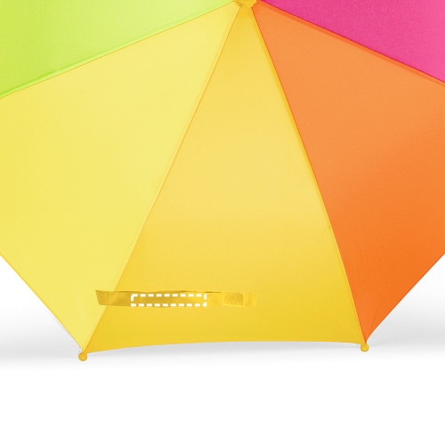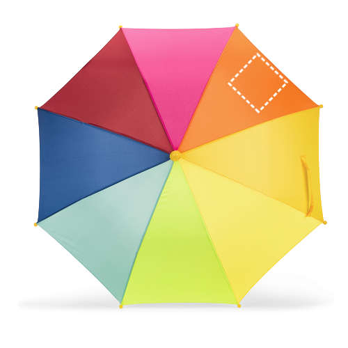 Ombrello colorato per bambini da 19" in poliestere 190T con aste e telaio in fibra di vetro e manico in metallo. L'ombrello ha l'apertura manuale ed è antivento. ø745 x 655 mm