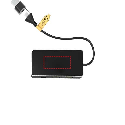 Hub USB 8 in 1 con 3 porte USB-A e 3 porte Tipo-C per collegare fino a 6 dispositivi contemporaneamente. Grazie alla doppia uscita USB-A e USB-C, il cavo è compatibile con i computer più recenti presenti sul mercato (USB-C). Questo hub USB presenta una finitura in gomma e un logo luminoso. Con confezione regalo in cartone riciclato (14,6 x 7,3 x 2,5 cm). Questo articolo può essere stampato anche con la stampa digitale, che ti permette di aggiungere un logo luminoso a colori sull'area designata.