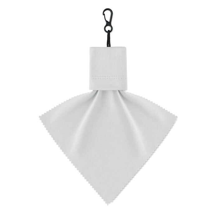 Panno per la pulizia in RPET con sacchetto in materiale autonomo con gancio di sospensione in plastica PP.