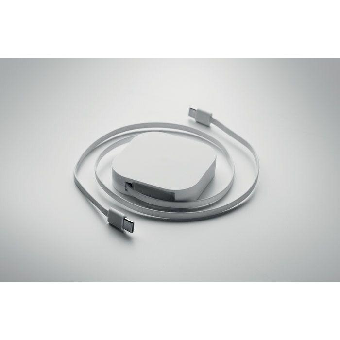Cavo di ricarica e dati retrattile da 100 W. Supporto per il telefono. Cavo in PVC con custodia in ABS per alimentazione e trasferimento dati (480Mbps). Connessione da Tipo-C a Tipo-C.