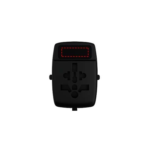 Adattatore da viaggio universale con due porte USB-A e due uscite USB-C, tra cui una porta USB-C con tecnologia GaN + PD da 65 W per la ricarica ultrarapida dei computer portatili. Finitura con un logo luminoso su superficie gommata lucida. Compatibile con le prese di corrente di oltre 150 paesi e fornito con una custodia da viaggio di alta qualità in PU.