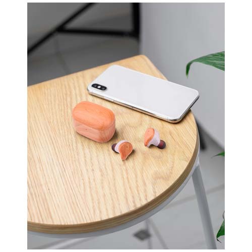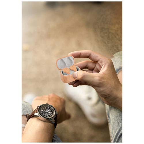 Auricolari wireless con tecnologia ENC che elimina i rumori esterni. Gli auricolari hanno un'autonomia di 6 ore e sono dotati di una funzione di accensione automatica che li attiva non appena vengono estratti dalla custodia. Inoltre, la base di ricarica è compatibile con i caricabatterie wireless. Gli auricolari si ricaricano completamente in 1 ora e supportano la versione Bluetooth® 5.0 con connessione da una distanza fino a 10 metri.