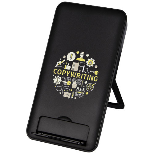 Stazione di ricarica realizzata in plastica ABS riciclata. La stazione di ricarica funziona anche come supporto per telefono, rendendola un accessorio perfetto per la scrivania. Collegare la stazione di ricarica a un computer o a un portatile e posizionarci sopra il dispositivo per avviare la ricarica. L'uscita wireless è di 10 W (max) per una ricarica rapida. Compatibile con tutti i dispositivi Qi (iPhone 8 o versione superiore e dispositivi Android che supportano la ricarica wireless). Fornito in confezione regalo con manuale di istruzioni (entrambi realizzati con materiali ecosostenibili).