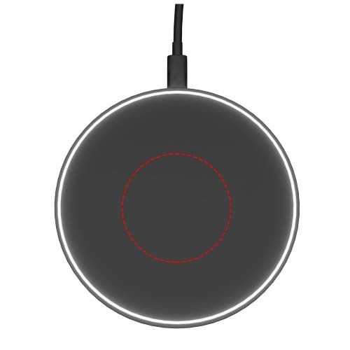 Stazione di ricarica wireless extra sottile da 15 W (10 x 7,2 cm) realizzata in plastica ABS con una finitura soft-touch. La base rotonda è adatta per l'incisione laser, che illumina il logo. Quando la stazione di ricarica è in uso, la luce sul bordo diventa bianca, mentre quando è in modalità di ricarica la luce è blu. Consegnato con un cavo di ricarica da 75 cm USB-A/Type-C realizzato in PET riciclato. Fornito in una confezione regalo (14,9 x 11,8 x 2,1 cm) con chiusura magnetica. Garanzia di 3 anni inclusa.