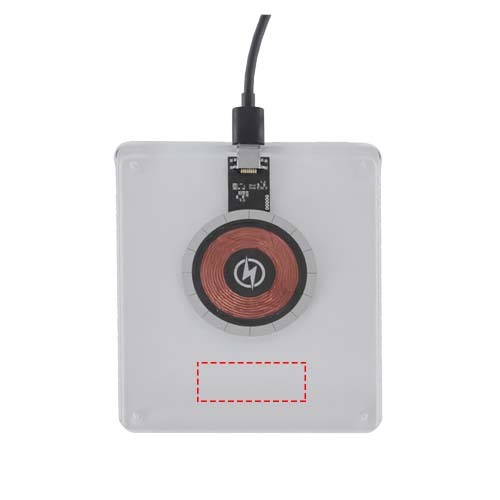Base di ricarica wireless esclusiva e trasparente in grado di fornire fino a 15 W di potenza di ricarica wireless. La base ha un LED retroilluminato che si illumina per 30-40 secondi quando la base è collegata o quando il telefono è in carica. Dimensione della base di ricarica: 11,5 x 10 x 1,5 cm. Fornita con un cavo di ricarica in rPET e una confezione regalo di colore nero (14,8 x 13,3 x 2,6 cm) con chiusura magnetica. Garanzia di 3 anni inclusa.