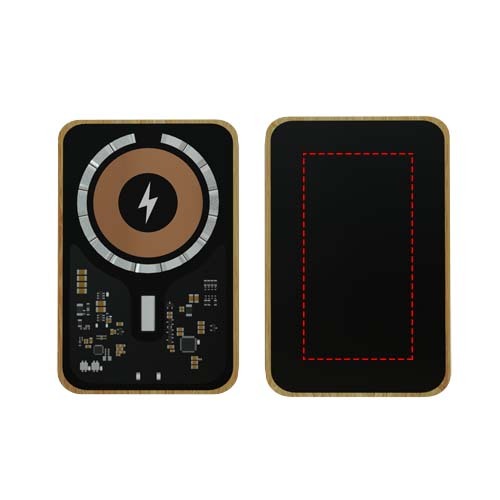 Power bank da 15 W e 10.000 mAh MagSafe con finitura in bambù, dotato di una potente uscita Tipo-C da 20 W (ricarica rapida PD). Dispone di un cavo di ricarica 3 in 1 compatibile con dispositivi Tipo-C, Android e iPhone, che consente di caricare più dispositivi contemporaneamente. Per i telefoni privi di tecnologia MagSafe integrata (iPhone 12 e successivi), è incluso un anello magnetico. Il power bank è personalizzabile con un logo luminoso a colori o inciso al laser. Fornito in una confezione regalo.