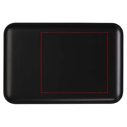 Power bank piatto e resistente con batteria ai polimeri da 5000 mAh. Può essere inciso a laser sul pannello frontale, in modo che il logo si illumini quando il power bank è acceso o in uso. Uscita: 5V/2A. Ingresso: 5V/2A. Non è fornito alcun cavo accessorio per rendere il prodotto più sostenibile.